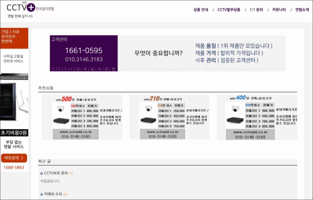 가정용이나 상가, 창고, 주차장 등 설치 환경에 맞춰 다양한 카메라 제품을 제안하고 있고, DVR이나 NVR 녹화기 같은 주변 장비도 함께 취급해요. 설치 이후에는 추가 장비 연결이나 이전 설치, 고장 수리 등 사후 관리도 가능한 걸로 알려져 있습니다.