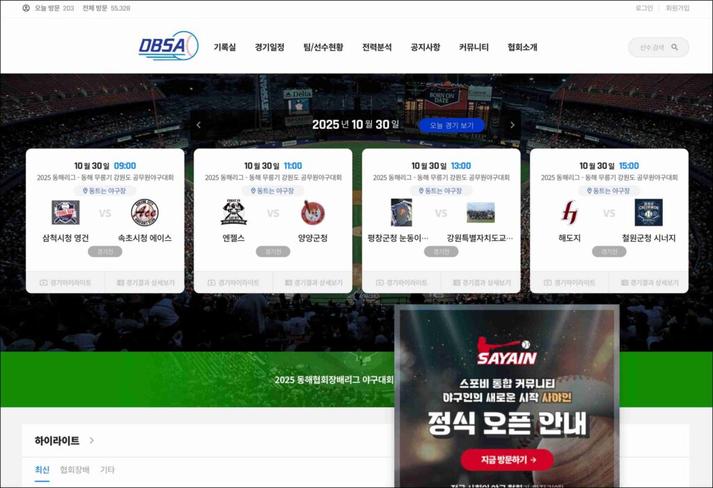 동해시 야구소프트볼협회 | 사회인야구 기록관리 시스템 (www.dbsa.co.kr)