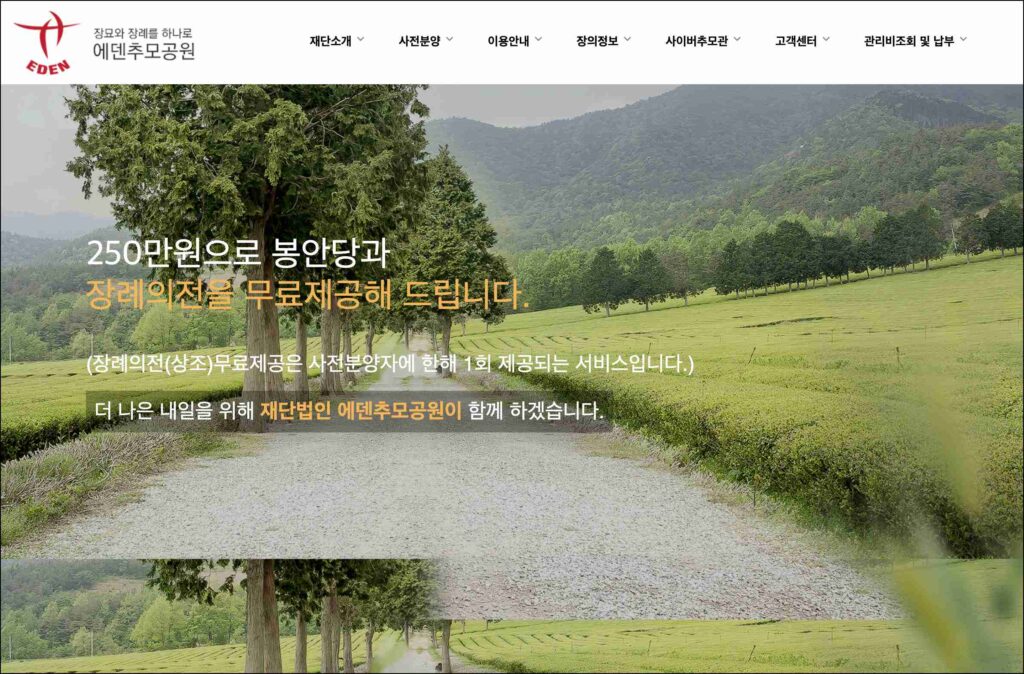 재단법인 에덴추모공원은 경기도 남양주시 화도읍에 위치한 추모시설이에요. 이름처럼 평온하고 조용한 분위기 속에서 고인을 기리고 기억할 수 있는 공간으로 알려져 있습니다.