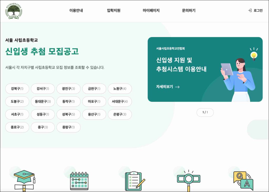 - 학부모나 보호자는 해당 시스템을 통해 여러 사립초등학교에 온라인으로 지원서 제출이 가능하며, 별도 여러 학교 사이트를 일일이 방문하지 않아도 됩니다.
