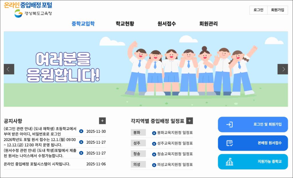 경상북도교육청 온라인 중입배정포털 (http://midin.gbe.kr)
