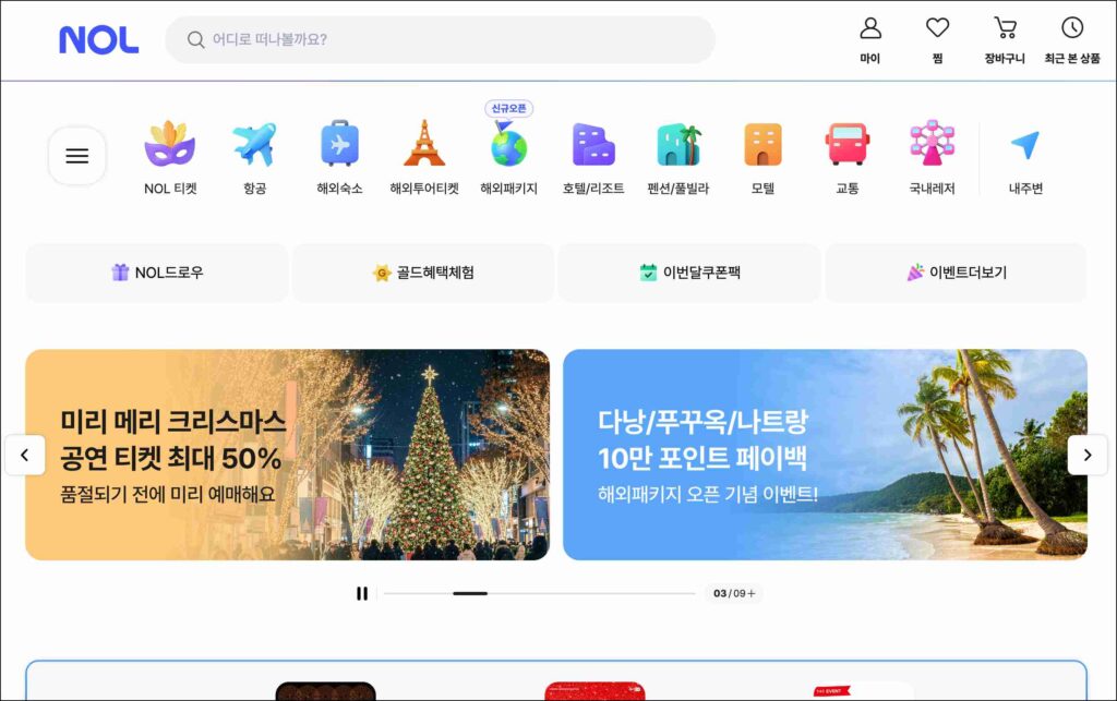 NOL은 여행과 여가를 한 번에 해결할 수 있도록 만든 통합 예약 서비스입니다. 예전에 숙소는 여기서, 공연 티켓은 저기서, 항공은 또 따로 찾아야 했던 경험 있으실 텐데요. NOL은 그런 번거로움을 줄이겠다는 방향으로 만들어진 플랫폼이라고 보시면 됩니다. 여행 계획부터 일상 속 여가까지 한 화면 안에서 이어지는 구조가 특징입니다.